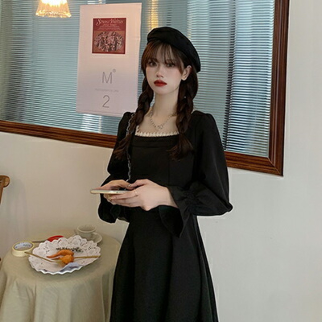 フレンチレトロな着こなしが叶う長袖ワンピース。