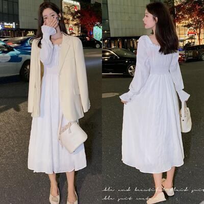 クラシカルな雰囲気漂うスクエアネックのワンピース。