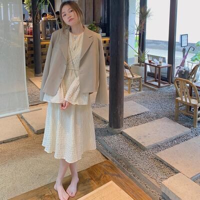 女性らしい柔らかな印象のミモレ丈ワンピース。