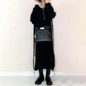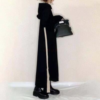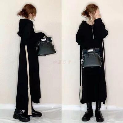 ワンピース レディース 袖あり 長袖 フード カジュアル ミモレ丈 おしゃれ 可愛い フェミニン サイドライン ワンピ ドレス かっこいい ゆったり 体型カバー シンプル リラックス スポーティ ブラック 黒 春 秋 冬 20代 30代 40代 50代