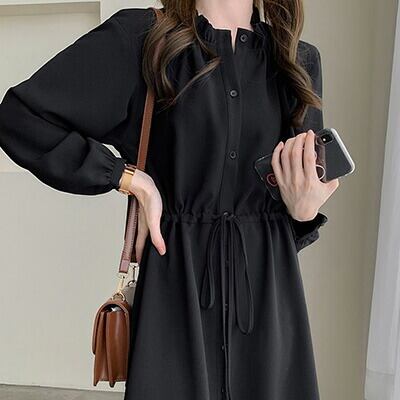 ロングワンピース レディース おしゃれ カジュアル ロング丈 ひざ下 ワンピ ブラック 黒 Aライン シフォン ドレス エレガント 上品 袖あり 長袖 春 秋 韓国 コーデ レトロ ガーリー お出かけ デート 20代 30代 40代 50代