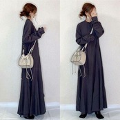 ロングワンピース レディース おしゃれ カジュアル ロング丈 ひざ下 ワンピ ブラック 黒 Aライン ドレス エレガント 上品 袖あり 長袖 韓国 コーデ レトロ ガーリー お出かけ デート 春 秋 冬 20代 30代 40代 50代
