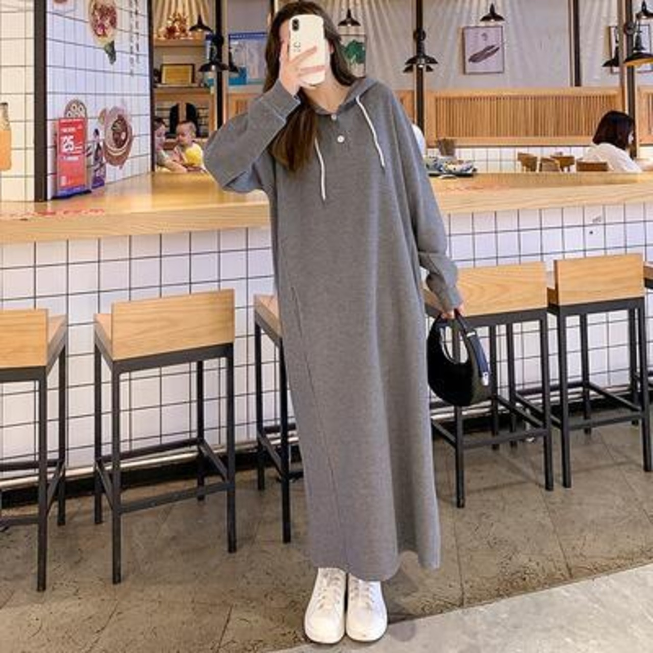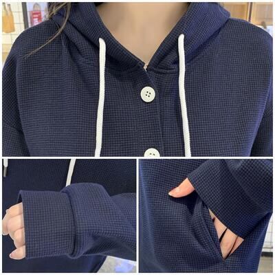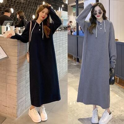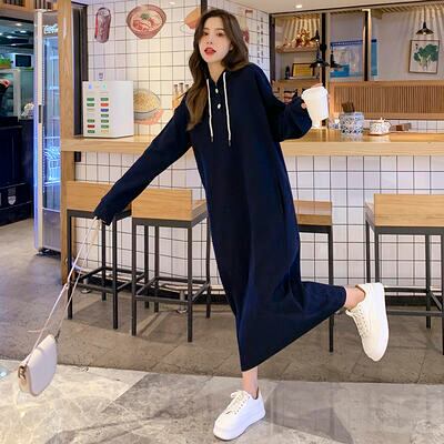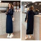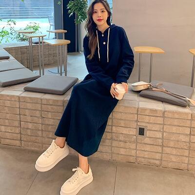 全2色 ワンピース ワッフル フード付き サーマル レディース 袖あり 長袖 カジュアル ロング丈 おしゃれ 可愛い シンプル フェミニン かっこいい ワンピ ドレス ゆったり 体型カバー 大きいサイズ グレー ネイビー 春 秋 冬 20代 30代 40代 50代
