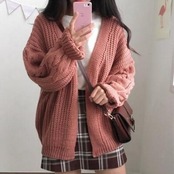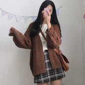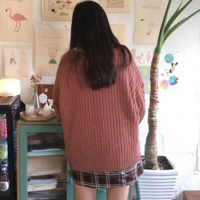 シンプルなデザインのニットカーディガン。