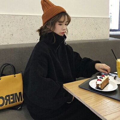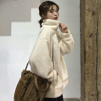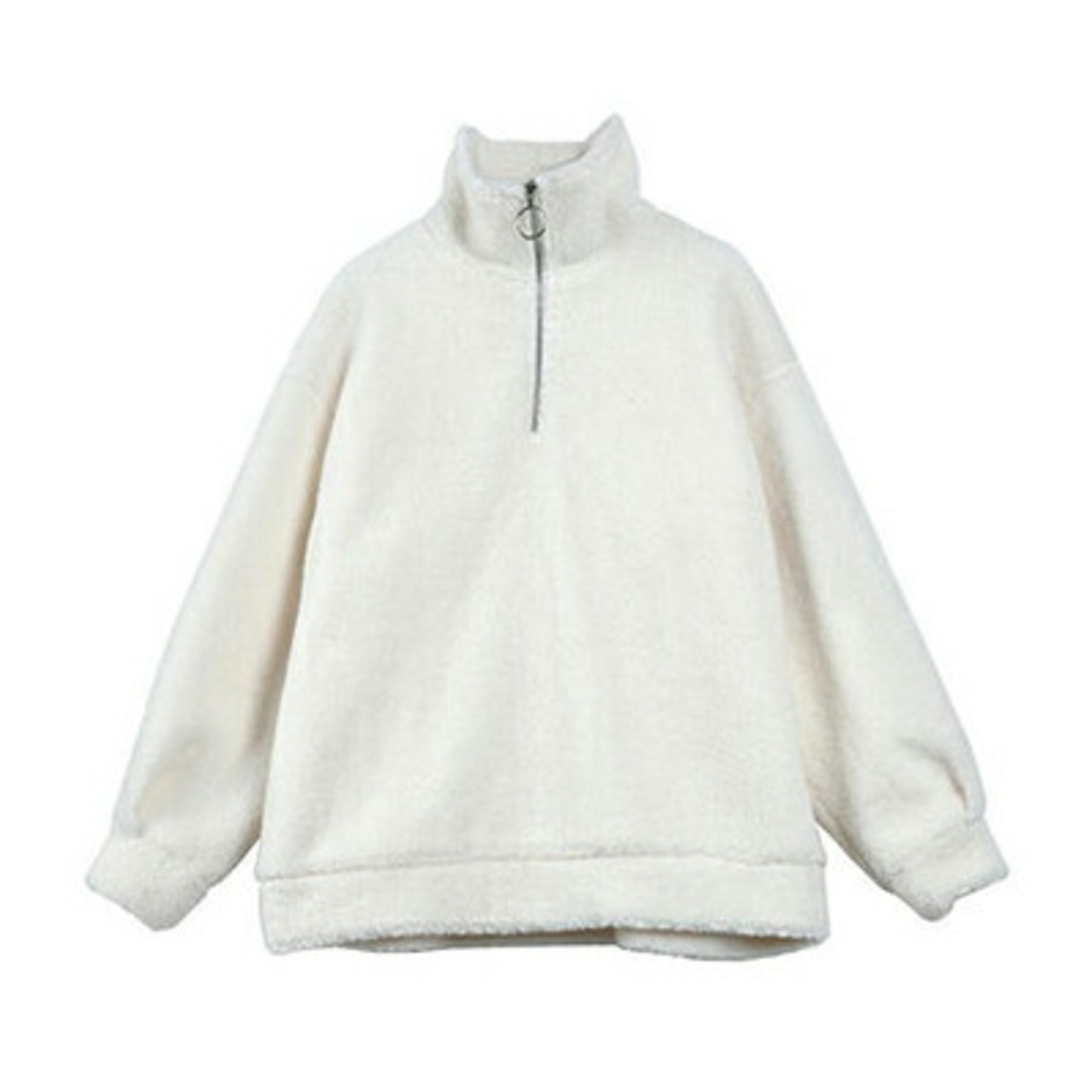 全2色 ウール秋 トップス ボア ジャケット スタンドカラー アウター レディース カジュアル プルオーバー おしゃれ 長袖 可愛い シンプル フェミニン ビッグシルエット 体型カバー オーバーサイズ ホワイト ブラック 黒 白 春 秋 冬 20代 30代 40代 50代