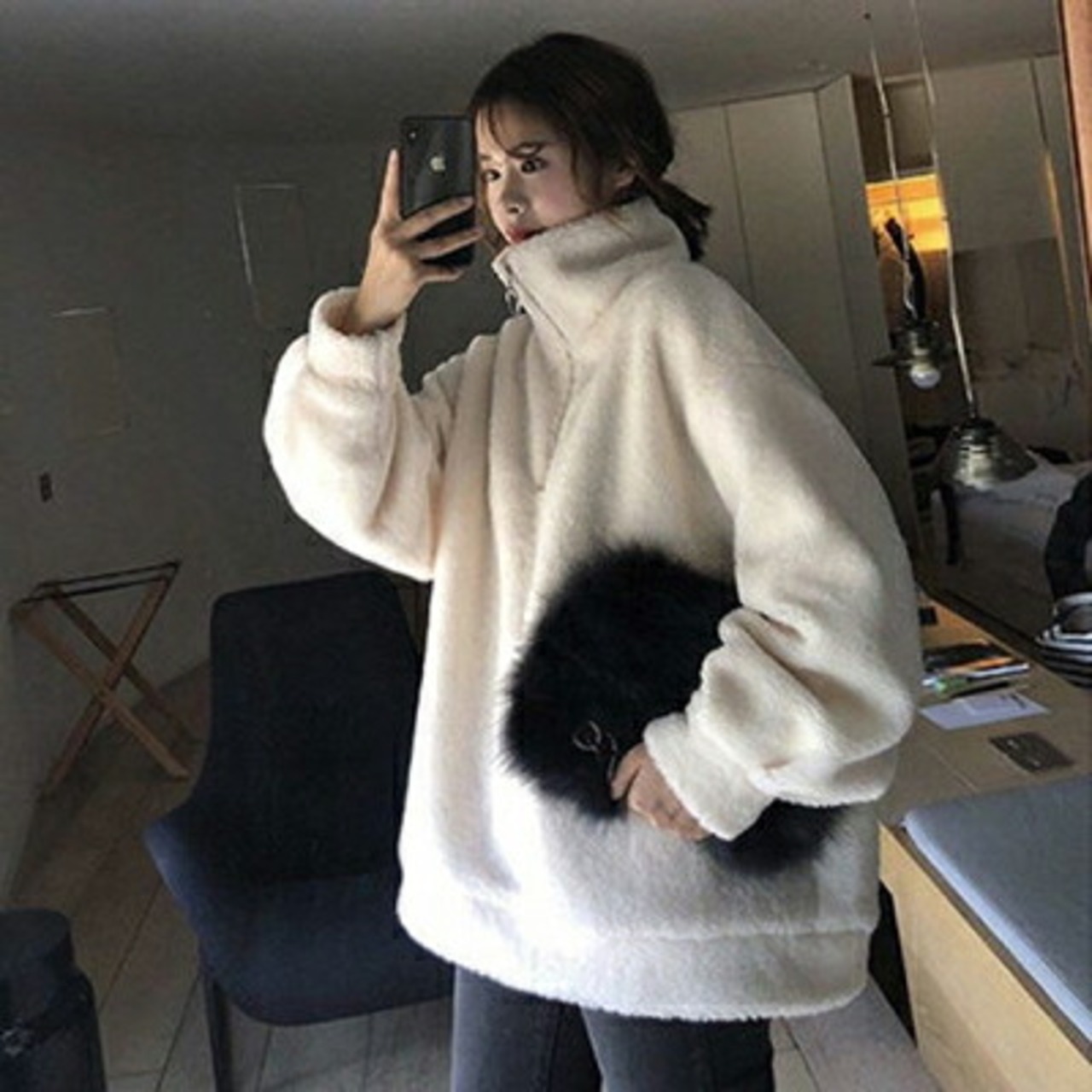 毛足の長さがカワイイもこもこトップス。
