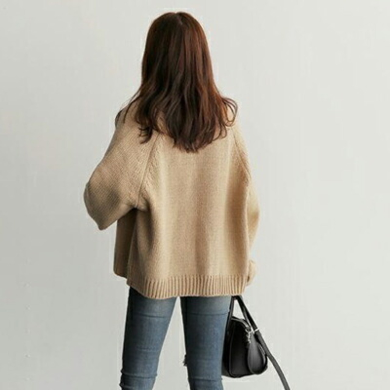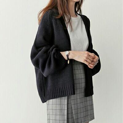 全3色 秋 アウター ローゲージ ジャケット ノーカラー カーディガン レディース カジュアル おしゃれ 長袖 可愛い シンプル フェミニン ビッグシルエット 体型カバー ネイビー カーキ ブラック 黒 紺 春 秋 冬 20代 30代 40代 50代