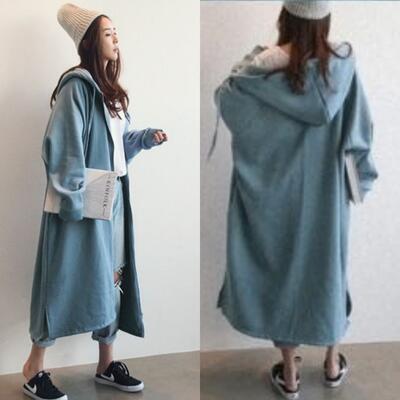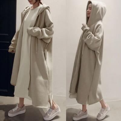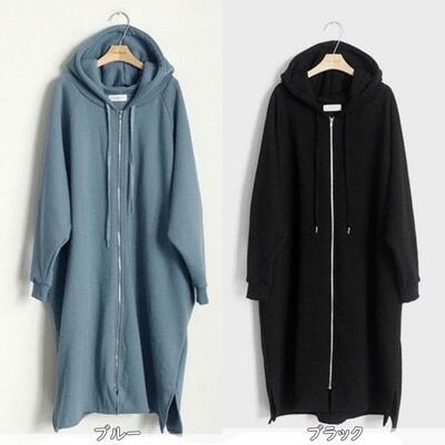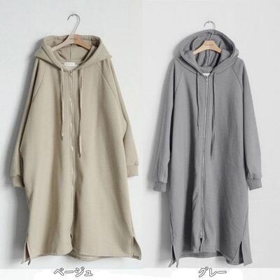 全4色 シンプルコート ジャケット スウェット アウター レディース 裏起毛 パーカー カジュアル 羽織 ロング丈 おしゃれ 長袖 可愛い フード付き かっこいい ゆったり 体型カバー 暖かい ベージュ ブルー グレー ブラック 黒 春 秋 冬 20代 30代 40代 50代