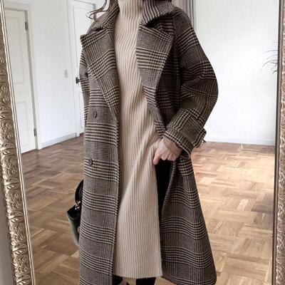 全2色 コート ジャケット チェスターコート アウター レディース きれいめ グレンチェック カジュアル 羽織 ロング丈 おしゃれ 長袖 可愛い かっこいい ゆったり 体型カバー シンプル 大きいサイズ ブラウン グレー 春 秋 冬 20代 30代 40代 50代
