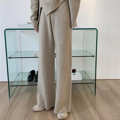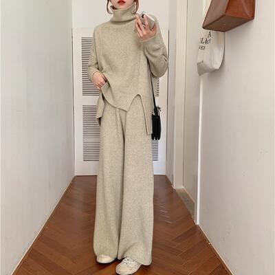セットアップ 2点セット パンツセット ニット セーター ワイドレッグ ハイネック レディース 長袖 カットソー カジュアル おしゃれ かわいい きれいめ フェミニン シンプル 楽ちん ゆったり 体型カバー 春 秋 冬 20代 30代 40代 50代