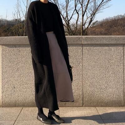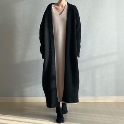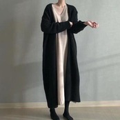 シンプルなデザインのロングニットカーディガン。