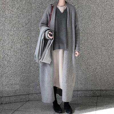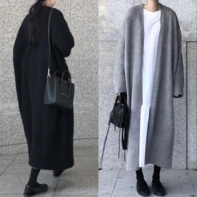 全2色 コート ジャケット ニットカーディガン アウター レディース きれいめ カジュアル 羽織 ロング丈 おしゃれ 長袖 可愛い エレガント シンプル ゆったり 体型カバー 大きいサイズ ブラック 黒 グレー 春 秋 冬 20代 30代 40代 50代