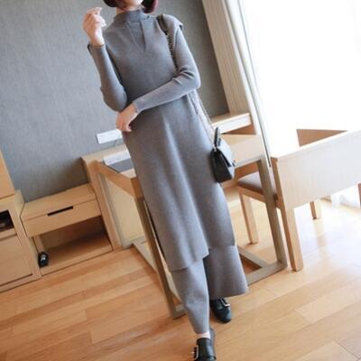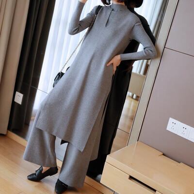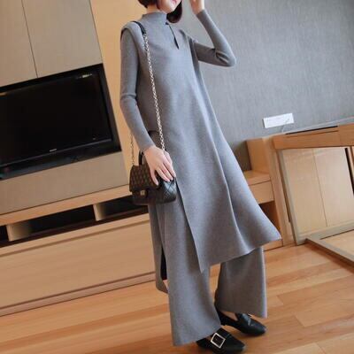 大きいサイズレイヤード セットアップ 2点セット パンツセット ニット ベスト ワイドレッグ レディース ノースリーブ ロング丈 カットソー カジュアル おしゃれ きれいめ フェミニン シンプル 楽ちん ゆったり 体型カバー グレー 春 秋 冬 20代 30代 40代 50代