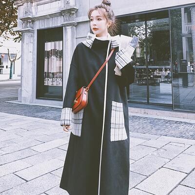大きいサイズコート レディース 秋 冬 ロングコート チェスター ステンカラー フード付き きれいめ カジュアル ジャケット アウター 羽織 ロング丈 おしゃれ 長袖 可愛い チェック柄 ゆったり フェミニン ブラック 黒 春 20代 30代 40代 50代