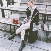 ポイント使いのチェック柄が印象的なフード付きコート。