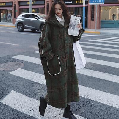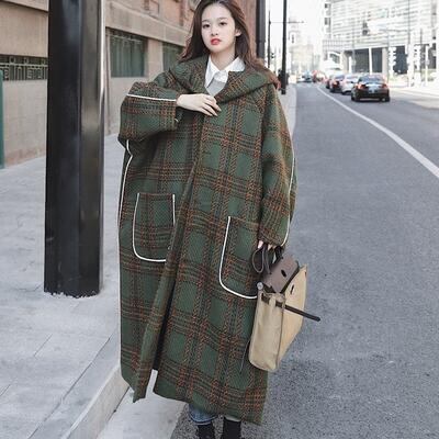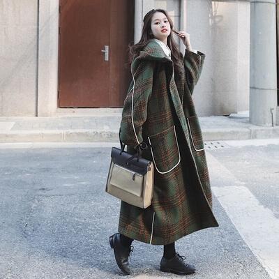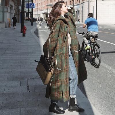 大きいサイズコート フード付き レディース 秋 冬 ロングコート きれいめ チェック柄 カジュアル ジャケット アウター 羽織 ロング丈 おしゃれ 長袖 可愛い フェミニン かっこいい ゆったり 体型カバー グリーン 春 20代 30代 40代 50代