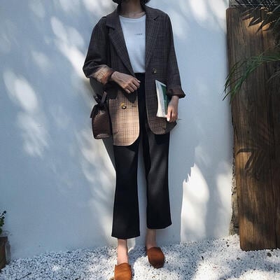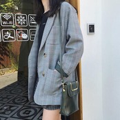 マニッシュな雰囲気のチェック柄テーラードジャケット。
