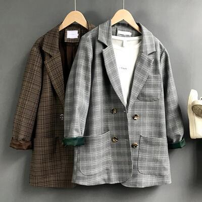 全2色 テーラードジャケット アウター レディース コート チェック柄 ジャケット きれいめ カジュアル 長袖 羽織 おしゃれ 可愛い エレガント マニッシュ かっこいい オフィス クラシカル グレー ブラウン 春 秋 冬 20代 30代 40代 50代