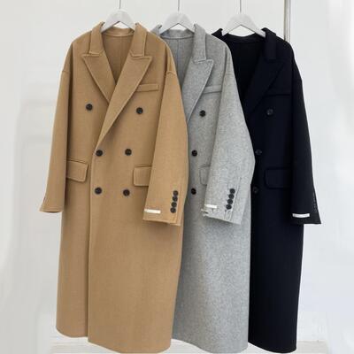 ゆったりシルエットのダブルボタンチェスターコート。