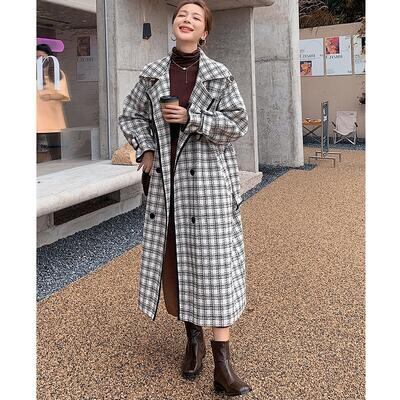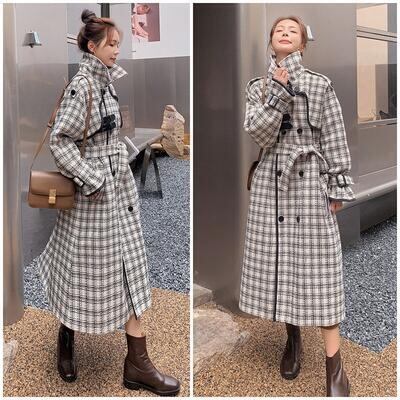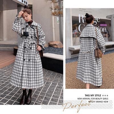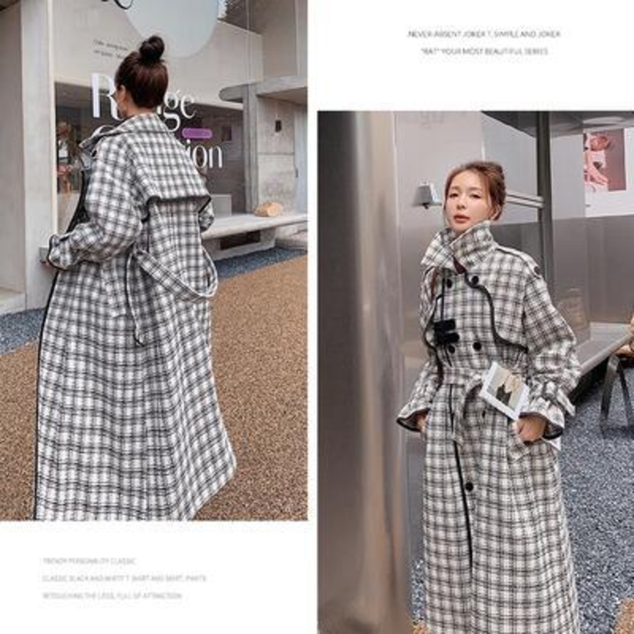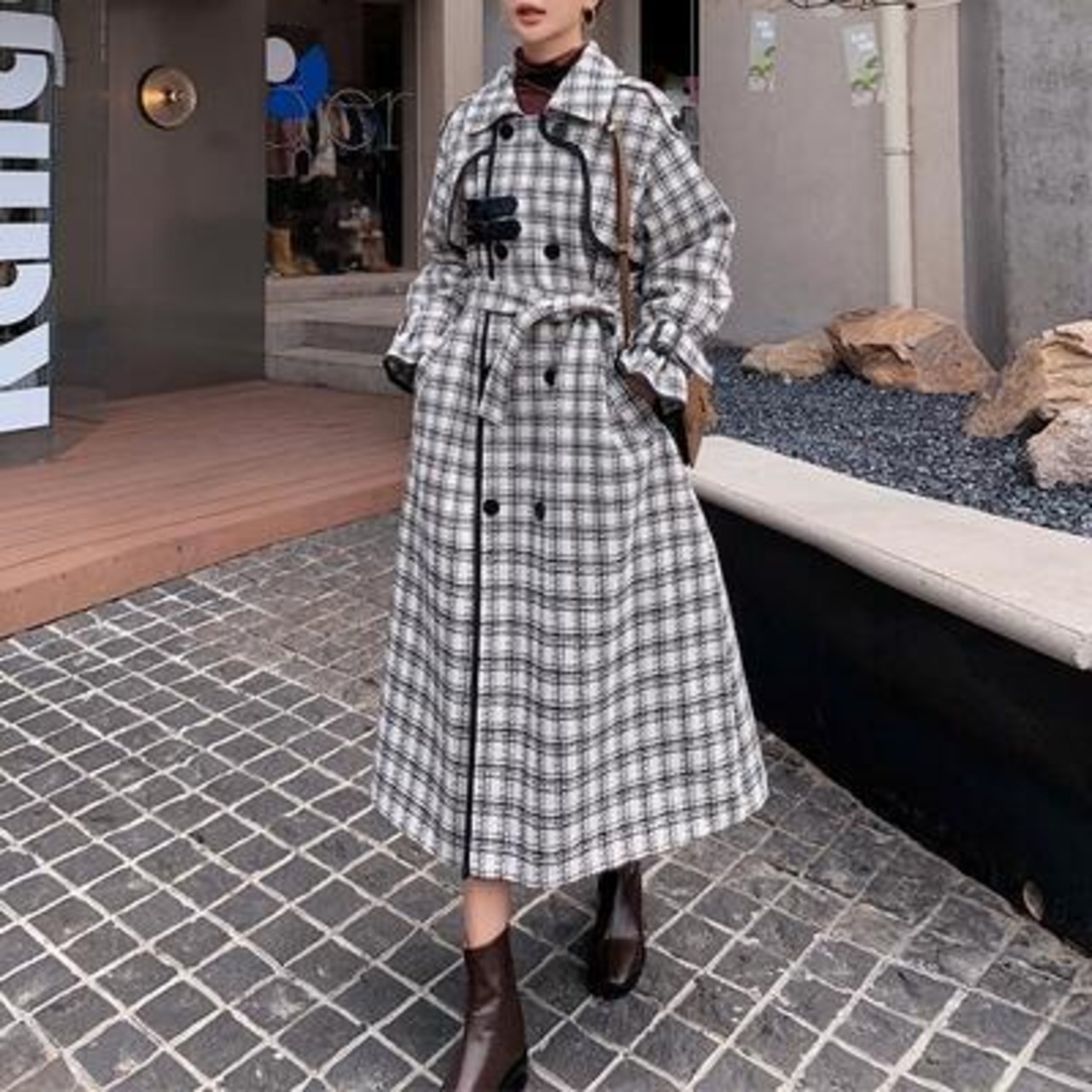 クラシカルな雰囲気のチェック柄トレンチコート。