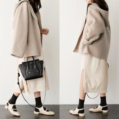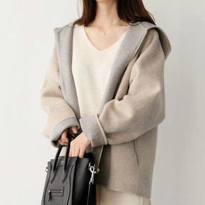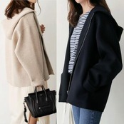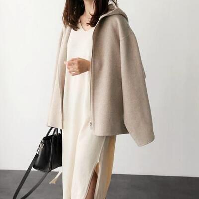 全2色 大きいサイズ シンプル ウール ウール混 フード付き コート アウター レディース ジャケット ショートコート きれいめ カジュアル 長袖 ジッパー 羽織 おしゃれ 可愛い かっこいい フェミニン ゆったり オーバーサイズ ベージュ ブラック 黒 春 秋 冬 20代 30代 40代 50代
