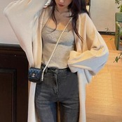 シンプルなデザインのロングニットカーディガン。