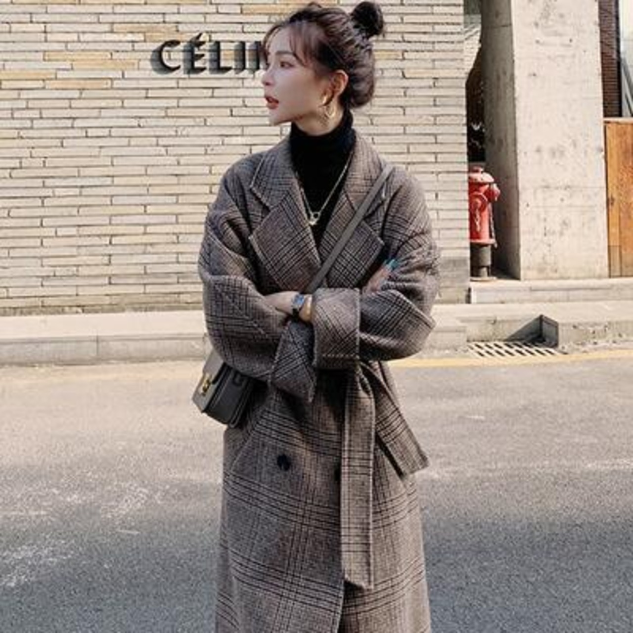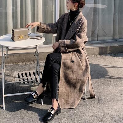 チェスターコート アウター レディース ジャケット ロングコート きれいめ カジュアル チェック 長袖 羽織 グレンチェック おしゃれ 可愛い エレガント かっこいい ゆったり オーバーサイズ レトロ ブラウン 春 秋 冬 20代 30代 40代 50代