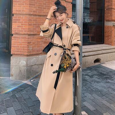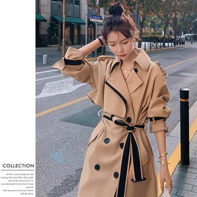 トレンチコート アウター レディース ジャケット ロングコート きれいめ 配色 カジュアル 長袖 羽織 おしゃれ 可愛い かっこいい ウエストベルト 切り替え バイカラー クラシカル 大きいサイズ ブラウン 春 秋 冬 20代 30代 40代 50代