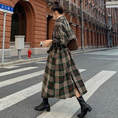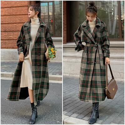 【M 即納】厚手 暖かい 女性 大人 チェスター ゆったり チェスターコート きれいめ カジュアル お洒落 アウター レディース トレンチコート ロングコート 長袖 チェック 可愛い かっこいい ロング丈 コート ベルト オーバーサイズ 韓国 コーデ グリーン 緑 春 秋 冬 20代 30代 40代 50代