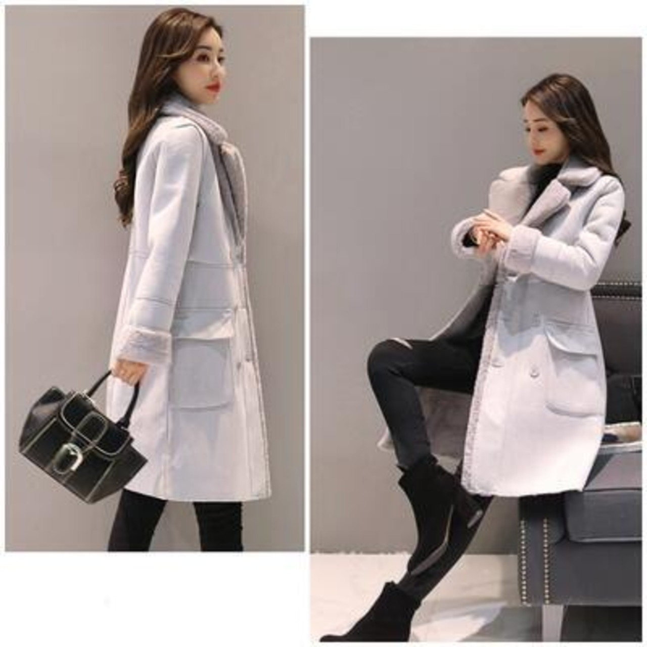 全2色 フェイクムートンコート アウター レディース ジャケット ロングコート きれいめ カジュアル 長袖 羽織 フェイクファー おしゃれ 可愛い かっこいい エレガント 暖かい 大きいサイズ グレー ピンク 春 秋 冬 20代 30代 40代 50代
