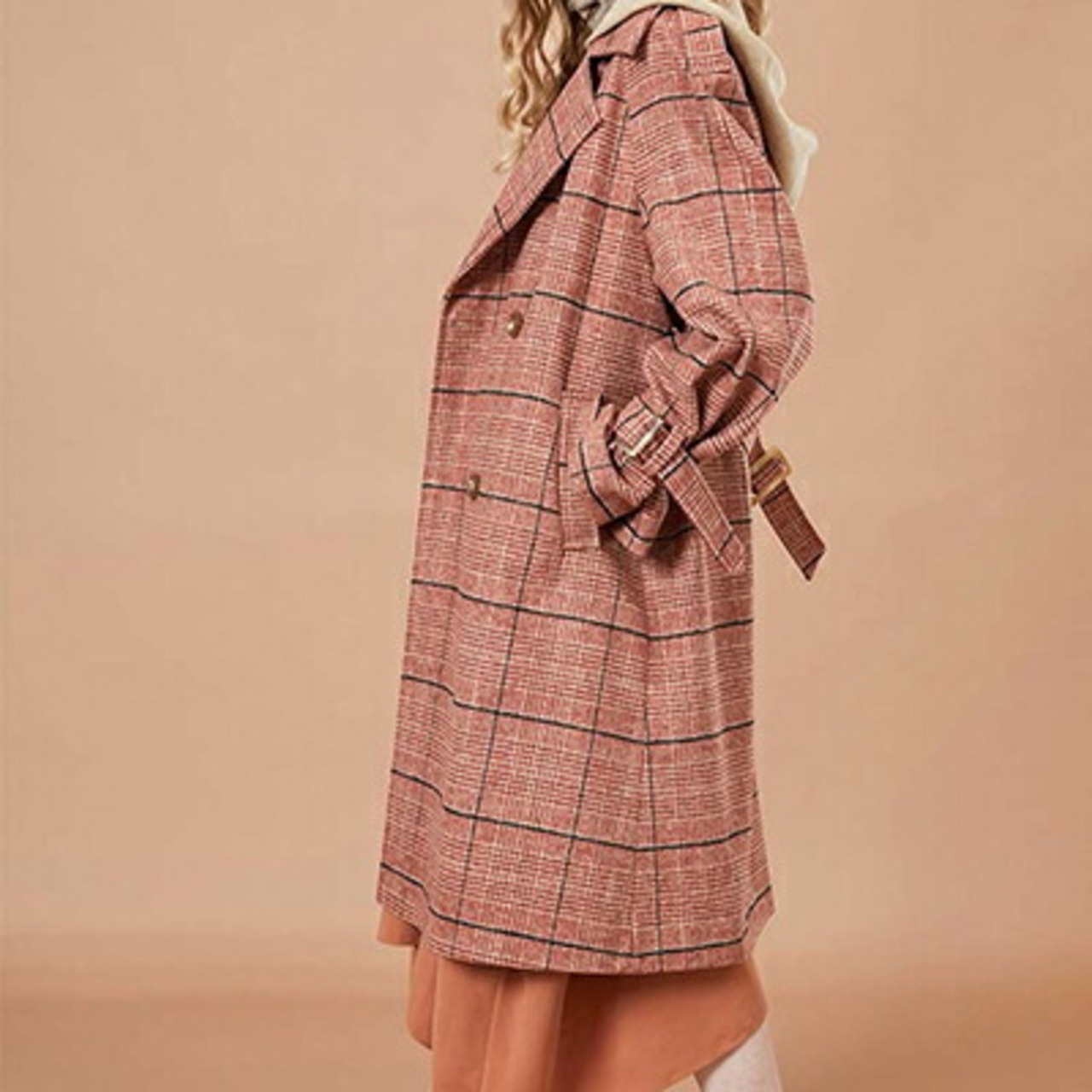 チェックがキュートな印象のチェスターコート