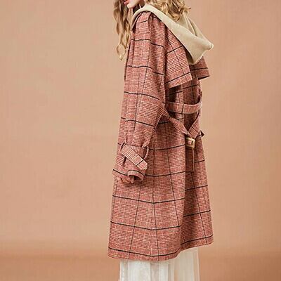 チェスターコート レディース 秋 冬 ロングコート きれいめ カジュアル フード 袖あり 長袖 ロング丈 膝丈 コート 韓国 コーデ ガーリー チェック エレガント お出かけ デート レッド 赤 秋 冬 20代 30代 40代 50代
