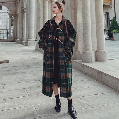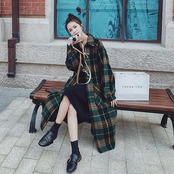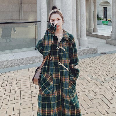ダッフルコート アウター レディース ロングコート ジャケット きれいめ カジュアル 長袖 ロング丈 コート お洒落 チェック柄 可愛い レトロ クラシカル ステンカラー ゆったり 大きいサイズ グリーン 春 秋 冬 20代 30代 40代 50代
