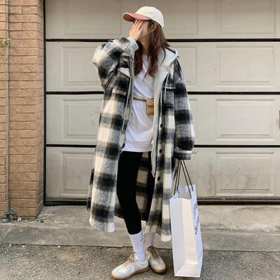 ルーズなオーバーサイズが可愛いチェック柄シャツコート。