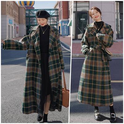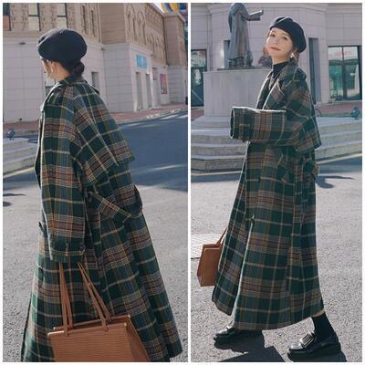 全2色 大きいサイズ チェスターコート アウター レディース ロングコート ジャケット きれいめ カジュアル 長袖 ロング丈 コート お洒落 チェック柄 可愛い レトロ クラシカル ゆったり オーバーサイズ 韓国 ブラウン グリーン 緑 春 秋 冬 20代 30代 40代 50代