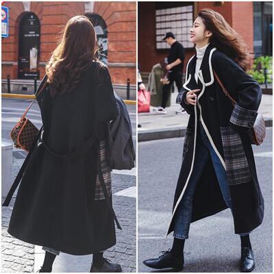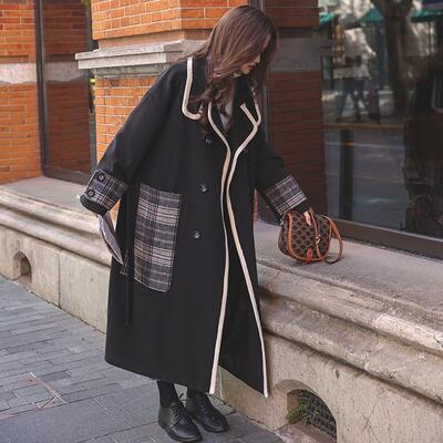 大きいサイズ チェスターコート アウター レディース ロングコート ジャケット きれいめ カジュアル 長袖 ロング丈 コート お洒落 チェック柄 ゆったり オーバーサイズ 可愛い ウエストベルト フェミニン ブラック 黒 春 秋 冬 20代 30代 40代 50代