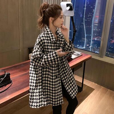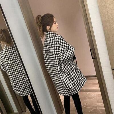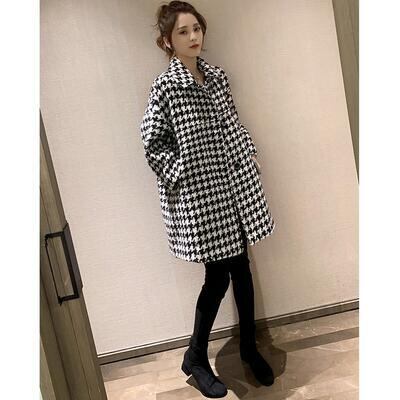 千鳥格子柄が上品なショートコート。