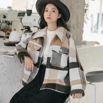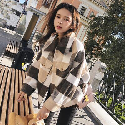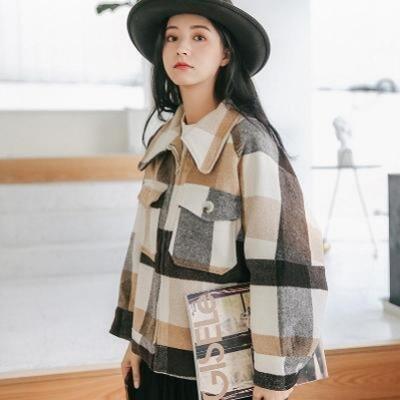 ウール混 コート アウター レディース ショートコート ジャケット きれいめ カジュアル 長袖 ショート丈 コート お洒落 チェック柄 可愛い かっこいい フェミニン ゆったり 暖かい 大きいサイズ カーキ 春 秋 冬 20代 30代 40代 50代