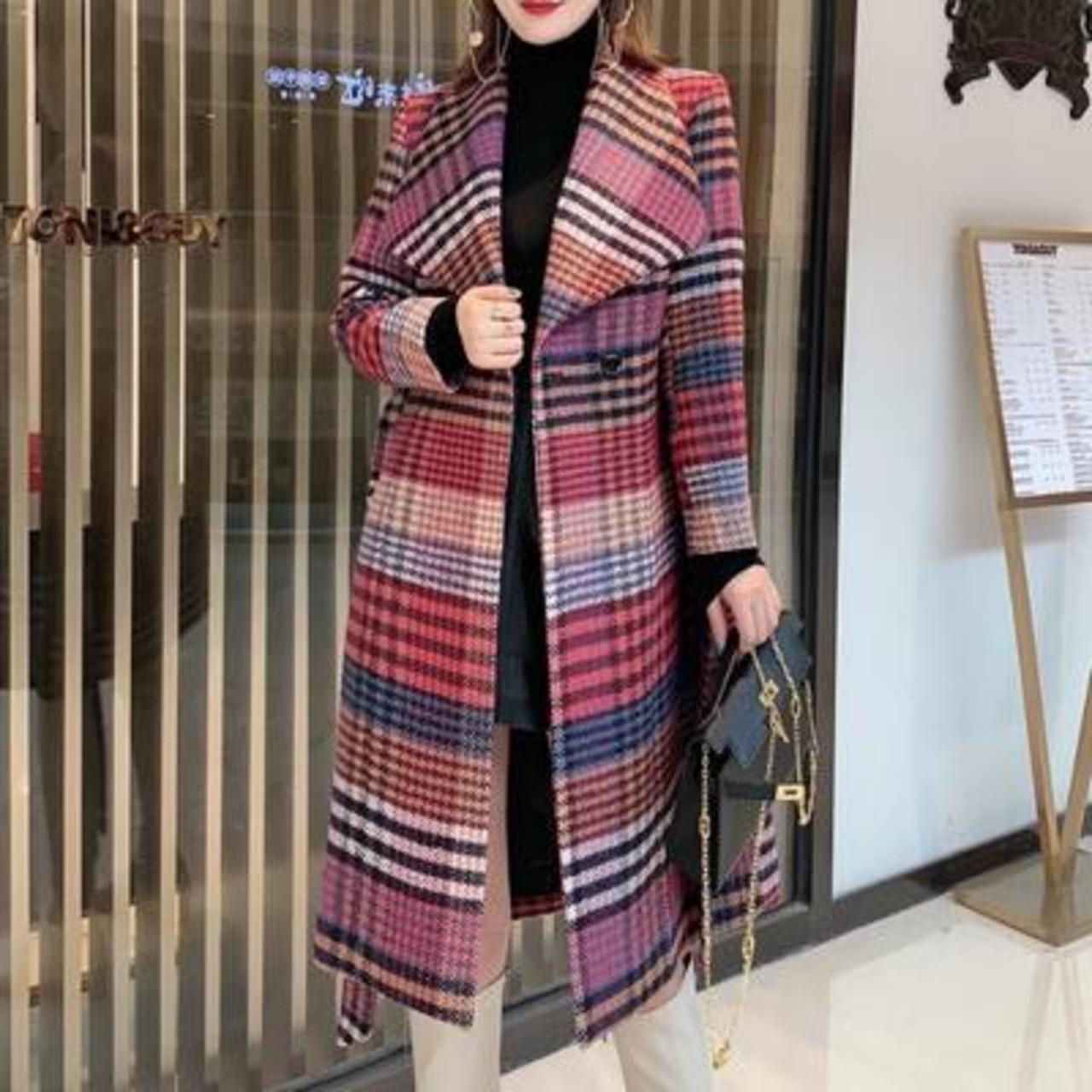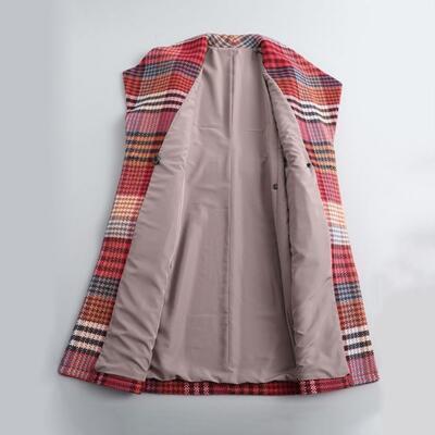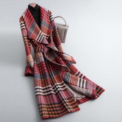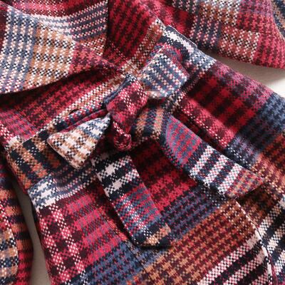 チェスターコート アウター レディース ロングコート ジャケット きれいめ カジュアル 長袖 ロング丈 コート チェック柄 お洒落 クラシカル 可愛い フェミニン ウエストベルト 韓国 大きいサイズ レッド 赤 春 秋 冬 20代 30代 40代 50代