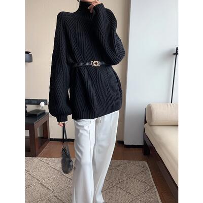 全2色 大きいサイズ ニット カットソー セーター トップス カジュアル タートルネック 長袖 ハイネック レディース おしゃれ 可愛い シンプル ゆったり オーバーサイズ リブ きれいめ 暖かい ハイネック ブラック 黒 ホワイト 白 春 秋 冬 20代 30代 40代 50代