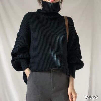 全4色 ドロップショルダー ハイネックニット カットソー セーター トップス カジュアル 長袖 タートルネック レディース おしゃれ 可愛い シンプル ゆったり オーバーサイズ ボリュームスリーブ きれいめ ブラウン ホワイト 白 ブラック 黒 ブルー 青 春 秋 冬 20代 30代 40代 50代
