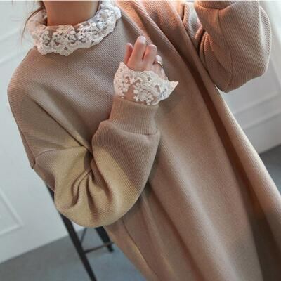 首元と袖口にレースを重ねたレイヤード風のデザイン。