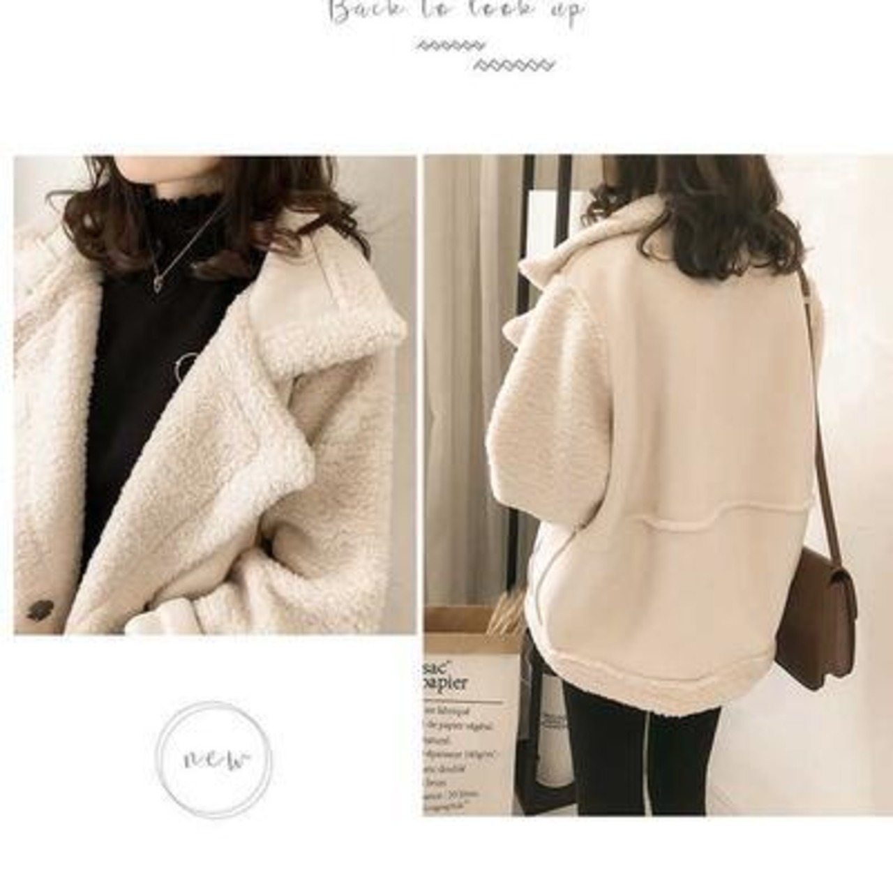 ショート丈のボアムートンジャケット。
