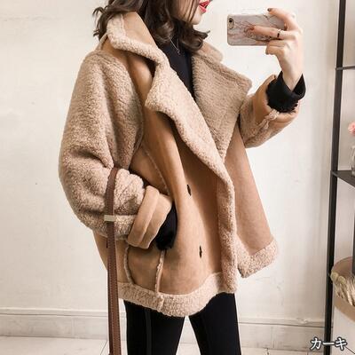 全5色 大きいサイズ ボア ムートン コート アウター レディース ショートコート ジャケット ブルゾン かっこいい カジュアル 切り替え 長袖 ショート丈 ゆったり オーバーサイズ お洒落 暖かい 可愛い ブラウン ベージュ ホワイト 白 カーキ 春 秋 冬 20代 30代 40代 50代