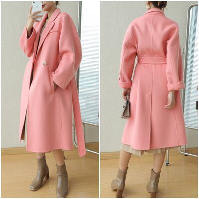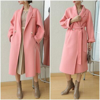 全3色 ウール チェスターコート アウター レディース ロングコート ジャケット きれいめ カジュアル 切り替え 長袖 ロング丈 シンプル コート 羽織 お洒落 ウエストベルト 可愛い フェミニン ピンク ブラック 黒 ベージュ 春 秋 冬 20代 30代 40代 50代
