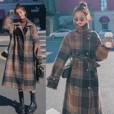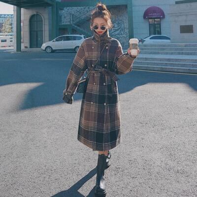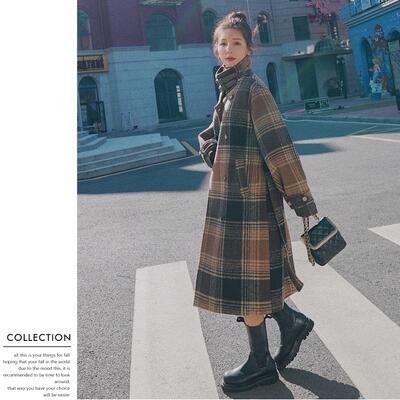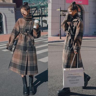 チェスターコート アウター レディース ロングコート ジャケット きれいめ カジュアル スタンドカラー 長袖 ロング丈 チェック柄 コート 羽織 お洒落 ウエストベルト 可愛い フェミニン クラシカル レトロ ブラウン 春 秋 冬 20代 30代 40代 50代