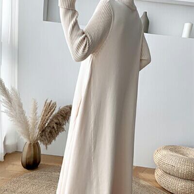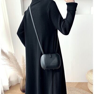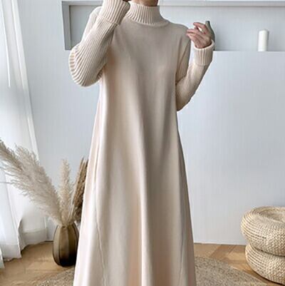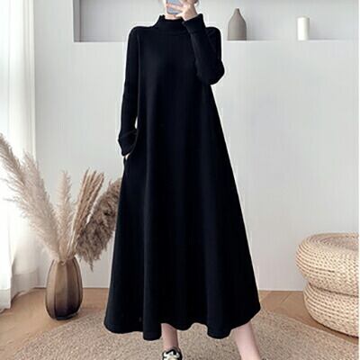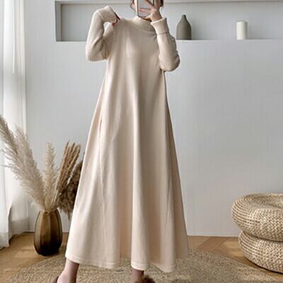 全2色 ロングワンピース レディース おしゃれ カジュアル ロング丈 ひざ下 ワンピ Aライン ドレス シンプル 上品 袖あり 長袖 ニット ゆったり 韓国 コーデ 大人カジュアル 秋 冬 アプリコット ブラック 黒 20代 30代 40代 50代