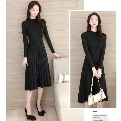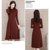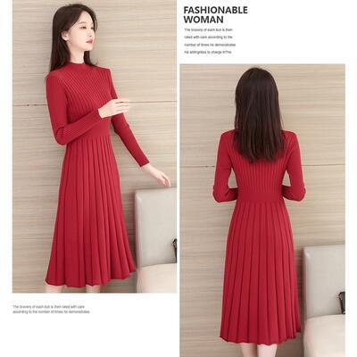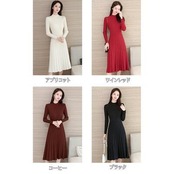 全4色 大きいサイズ ハイネックニット ワンピース エレガント 袖あり きれいめ カジュアル ミモレ丈 おしゃれ レディース 可愛い フェミニン 長袖 ワンピ ドレス ひざ丈 Aライン ハイウエスト シンプル ナチュラル ブラック 黒 ベージュ ブラウン レッド 春 秋 冬 20代 30代 40代 50代