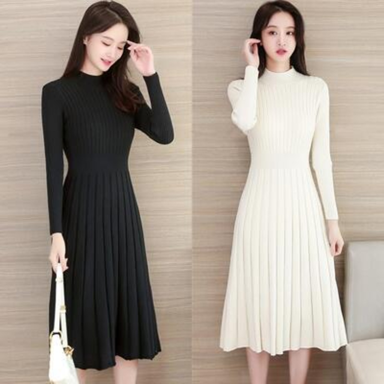 女性らしい綺麗なAラインシルエットのニットワンピース。