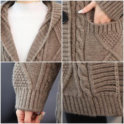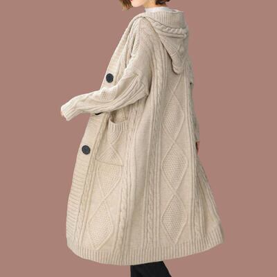 全3色 大きいサイズ ウール ウール混 アウター トップス レディース ジャケット コート カーディガン フード付き ニット カジュアル 羽織 おしゃれ 長袖 可愛い 体型カバー ゆったり フェミニン ノーカラー ベージュ ブラウン グレー 秋 春 冬 20代 30代 40代 50代